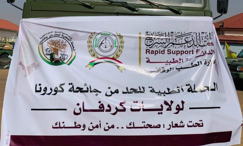 ومن جانبه قال مستشار والي غرب كردفان محمد حسن خريس ان هذه المبادارت الطيبة التي سيرت قوات الدعم السريع لتضافر الجهود والقضاء علي جائحة كورونا لولايات السودان المختلفة ولإنسان كردفان بصفة خاصة وان تلك الولايات في امس الحوجة لمثل هذه القوافل لافتاً إلى أن القافلة سوف تنطلق من مدينة الفولة بولاية غرب كردفان ومحلياتها وباقي ولايات كردفان معرباً عن شكره لقوات الدعم السريع ولقائدها.