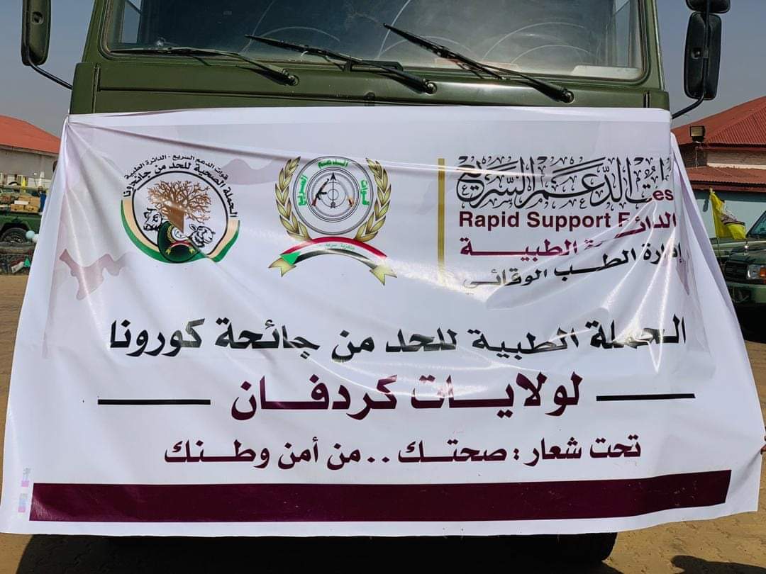 ومن جانبه قال مستشار والي غرب كردفان محمد حسن خريس ان هذه المبادارت الطيبة التي سيرت قوات الدعم السريع لتضافر الجهود والقضاء علي جائحة كورونا لولايات السودان المختلفة ولإنسان كردفان بصفة خاصة وان تلك الولايات في امس الحوجة لمثل هذه القوافل لافتاً إلى أن القافلة سوف تنطلق من مدينة الفولة بولاية غرب كردفان ومحلياتها وباقي ولايات كردفان معرباً عن شكره لقوات الدعم السريع ولقائدها.