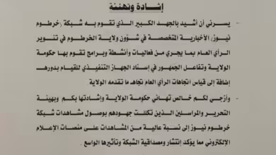 متابعات: سودان لايف نيوز – اشاد والي ولاية الخرطوم الاستاذ/ احمد عثمان حمزة بالجهد الكبير الذي تقوم به شبكة (خرطوم نيوز)…