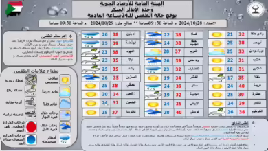 سودان لايف نيوز – أعلنت الهيئة العامة للأرصاد الجوية السودانية، اليوم السبت، عن أبرز ملامح الطقس في البلاد، مشيرة إلى…