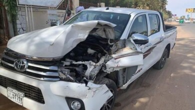 عربة بدون لوحات تصطدم بعربة مريم الصادق المهدي وتسرع بالهرب .